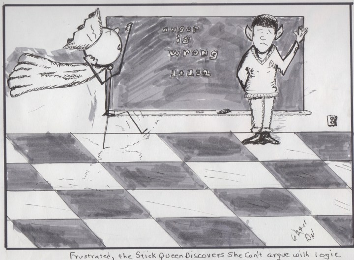 “Frustrated , the Stick Queen Discovers she Can’t Argue with Logic”